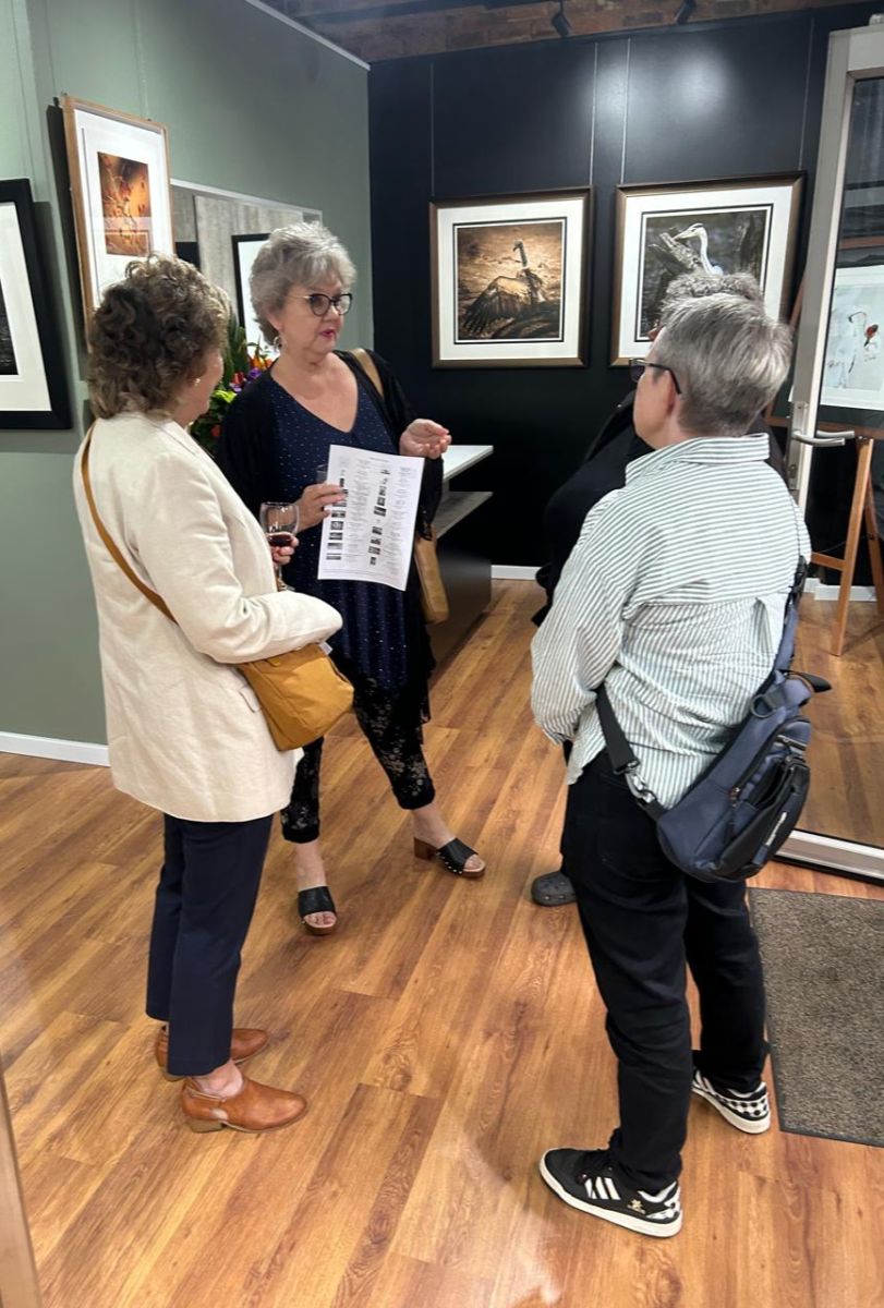 Our opening night, despite extreme weather conditions, drew about 50 attendees. Curated by Jeff Dooley, the high-quality works impressed patrons, who were captivated by the exhibition and gallery ambiance.